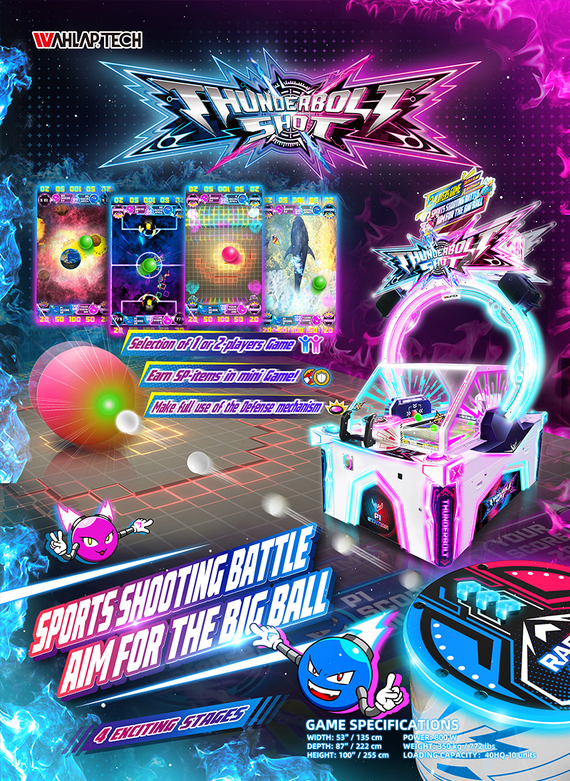 Elevating the ticket redemption game genre, players must make full use of defense mechanism to block attacks and earn SP-items in mini game phases for digital power-ups. This mix of physical aiming and reflex-based strategy makes it the best interactive arcade cabinet for parent-child duos and couples.