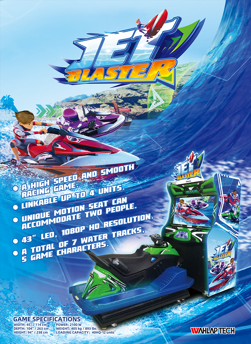 Designed as a premier boat racing arcade game, the Jet Blaster features a custom motion platform that lets players experience realistic watercraft racing action. Wavy visuals and physical feedback make it a standout attraction in any games arcade, ranking among the best arcade driving games for its unique mechanics.