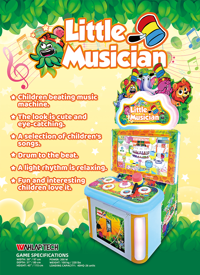 The "LITTLE MUSICIAN 2" is a new children beating music machine featuring a cute and eye-catching design that appeals to young children. It provides a delightful entry point into kids arcade games, combining vibrant visuals with interactive sound to capture attention immediately in any venue.