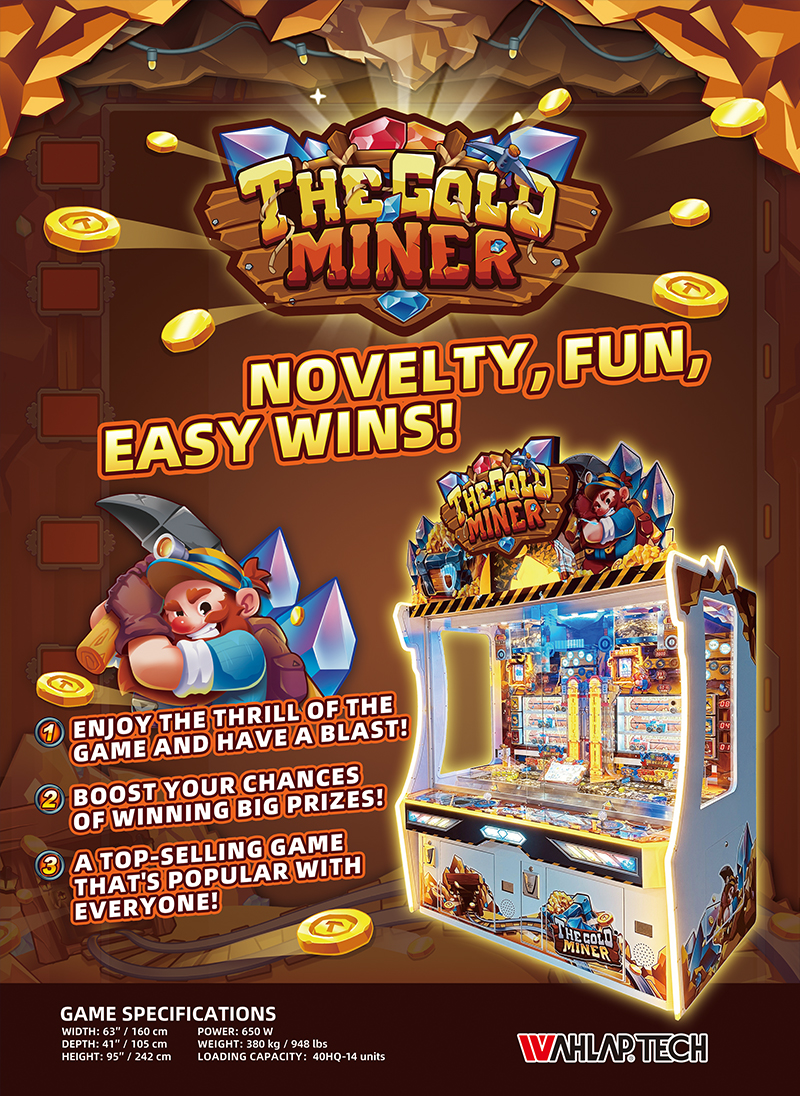 Redefining the arcade redemption game genre, "The Gold Miner" adds skill to the mix. Unlike a passive penny pusher, players use a joystick to shoot tokens into moving "Mining Cars". This active engagement makes it a standout arcade machine coin pusher that captivates players seeking control over their winning chances.