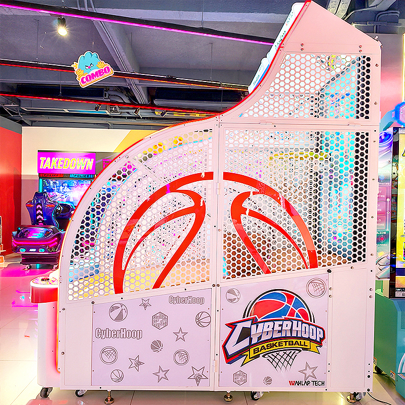 Revolutionizing the basketball hoop arcade machine market, this unit features an impressive 65" vertical screen that displays colorful animations. With bold, sporting-themed colors plus slick edge lighting and transparent sides for an exciting new look, it fits perfectly in any adult arcade, standing out as a premium Sport arcade game.