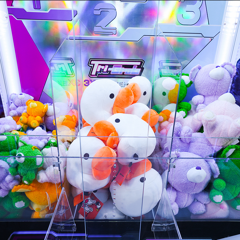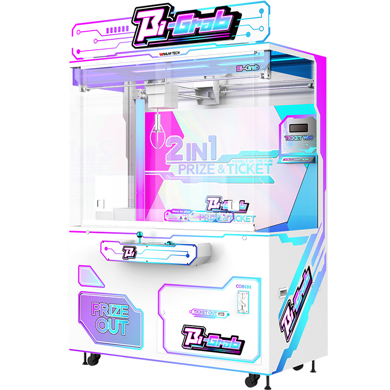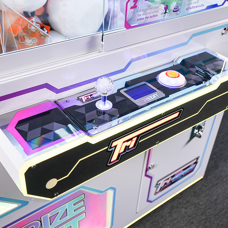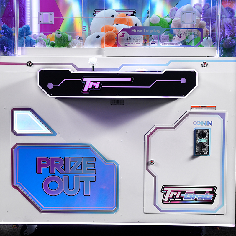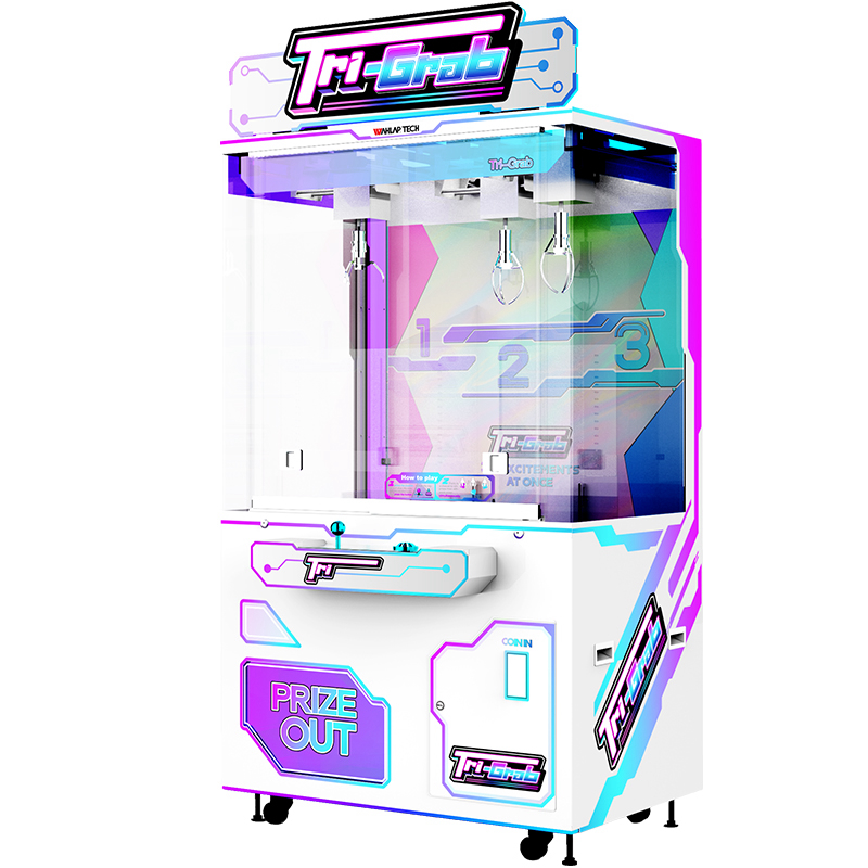 This unique three-claw prize crane offers a variety of prize options, revolutionizing the claw machine arcade game market. Players can drop all three claws simultaneously using a single joystick and win up to three different prizes with one play, creating a thrill unmatched by any standard arcade crane machine or grab machine arcade unit.